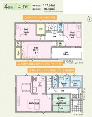 建物面積 | 95.58㎡ | 土地面積 | 公簿 147.84㎡ |